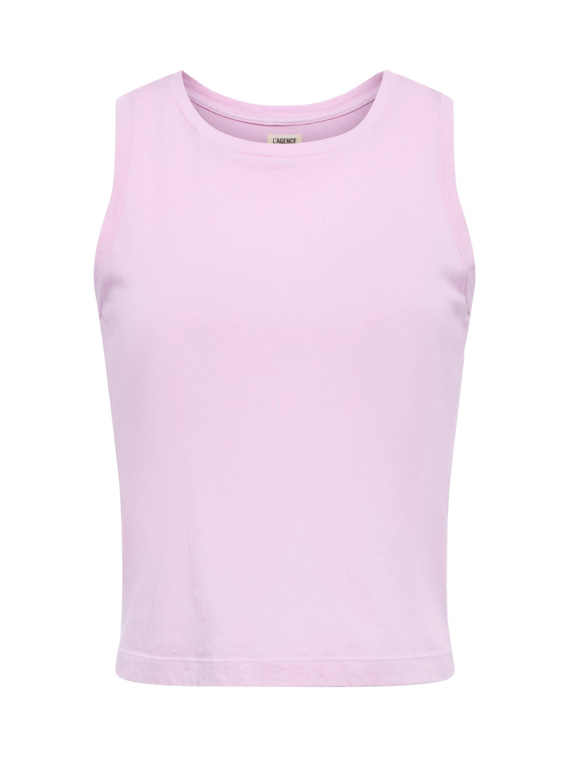 A closet staple and ideal base layer. Our essential sleeveless tank is back in mauve mist.