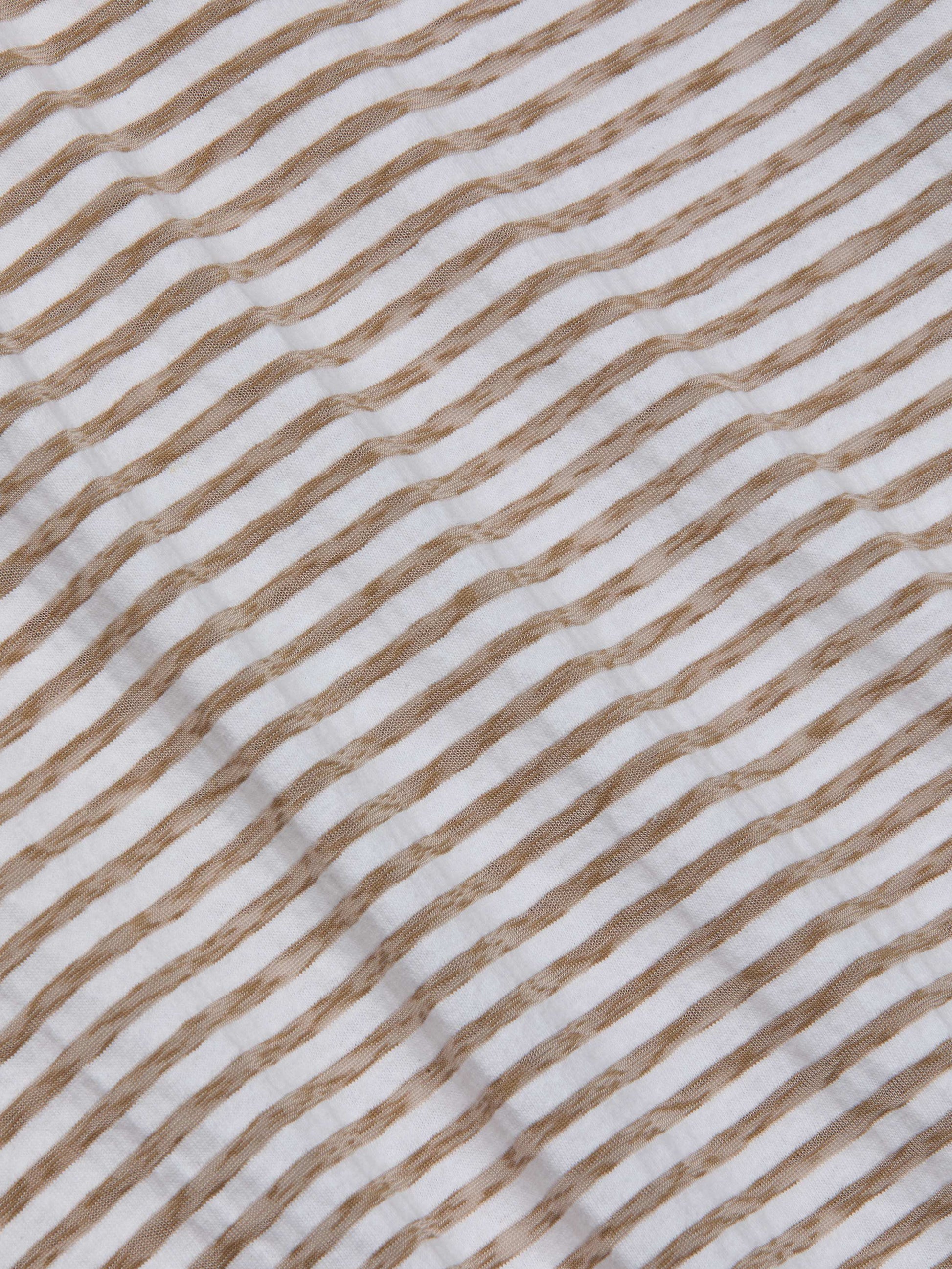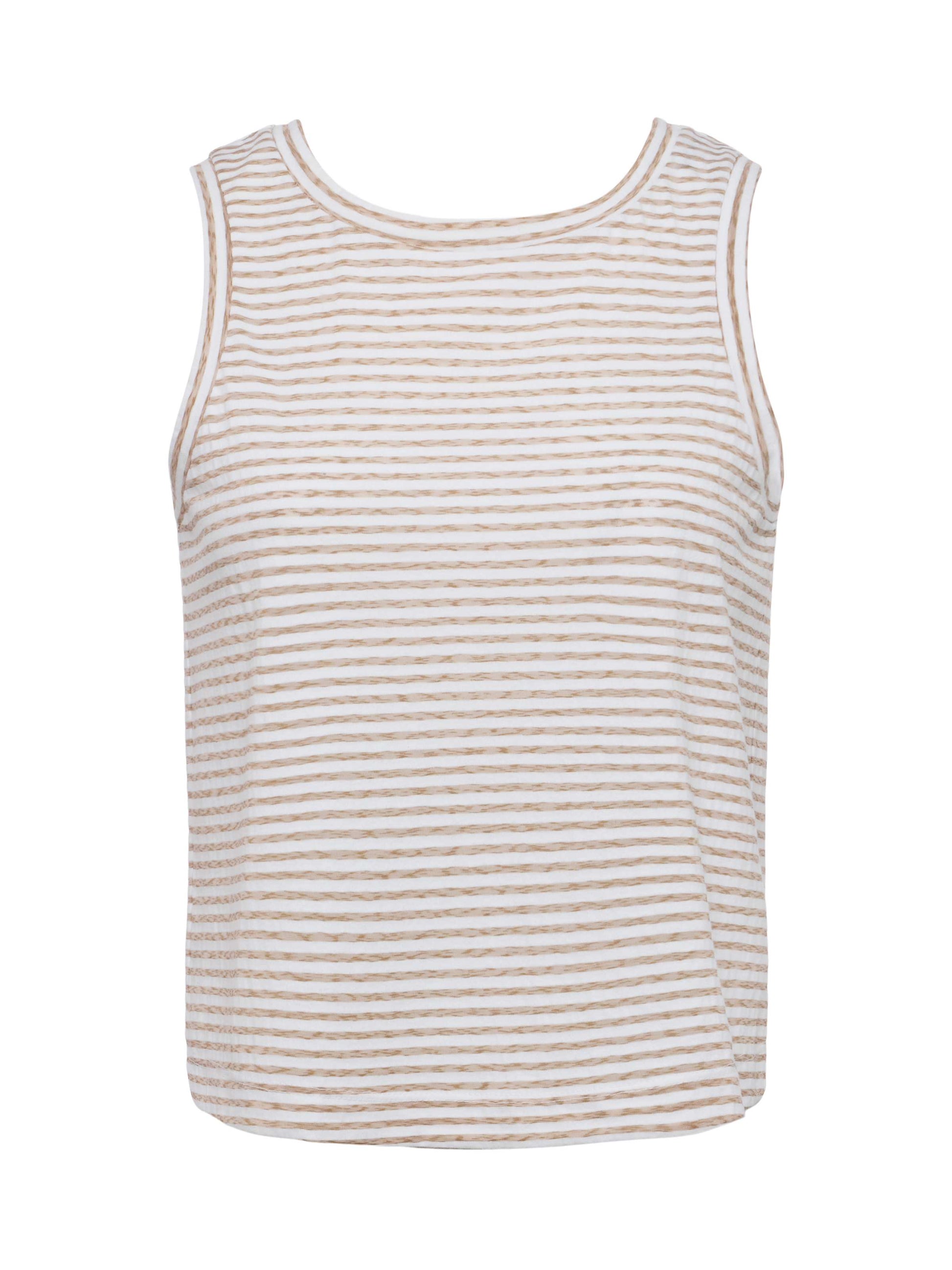 A closet staple and ideal base layer. Our essential sleeveless tank is back in white with tan stripes.