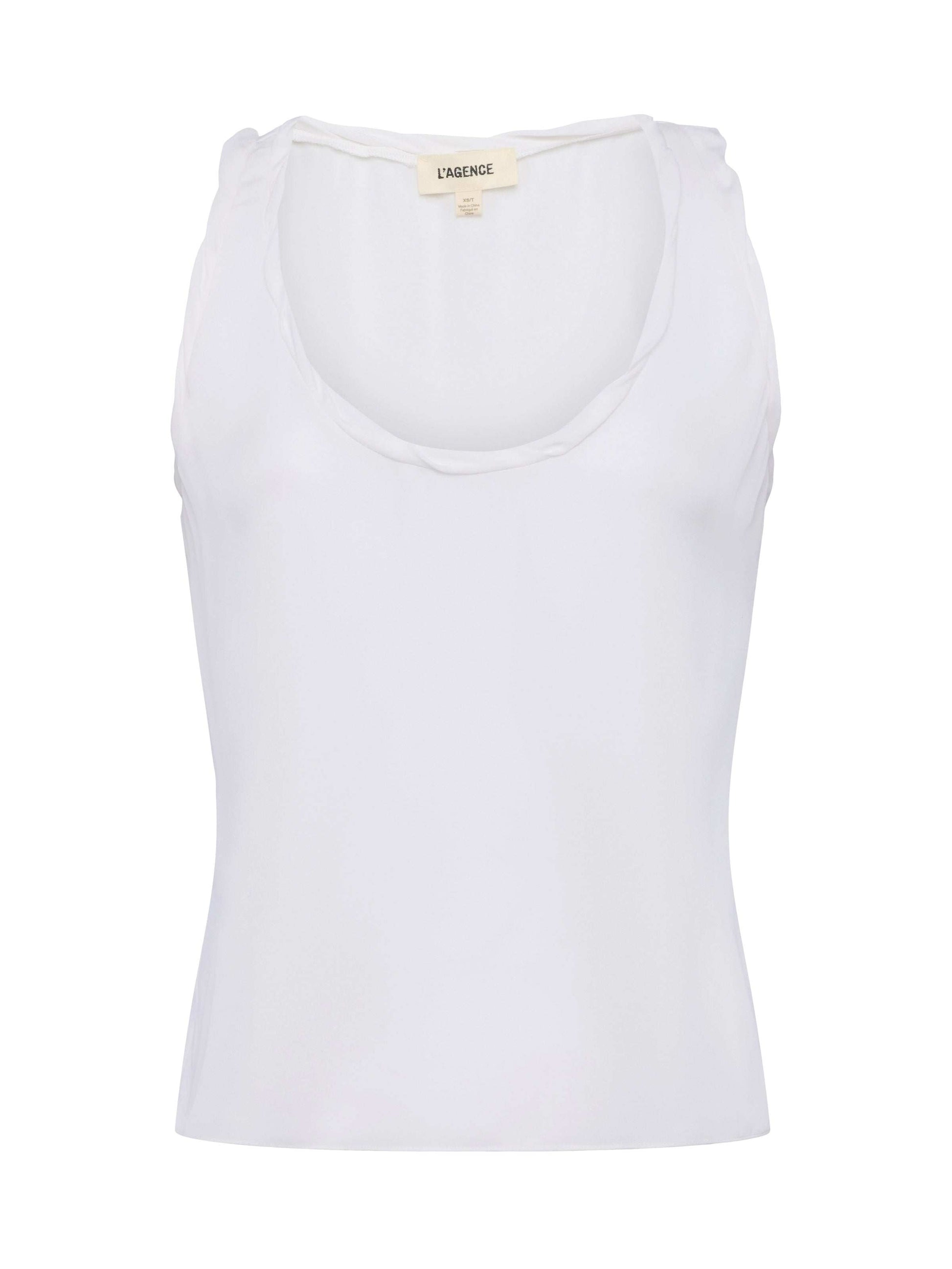 The essential white tank, elevated. Cut from airy silk georgette and finished with a twisted band, the Trixi will be your new go-to tank every season.